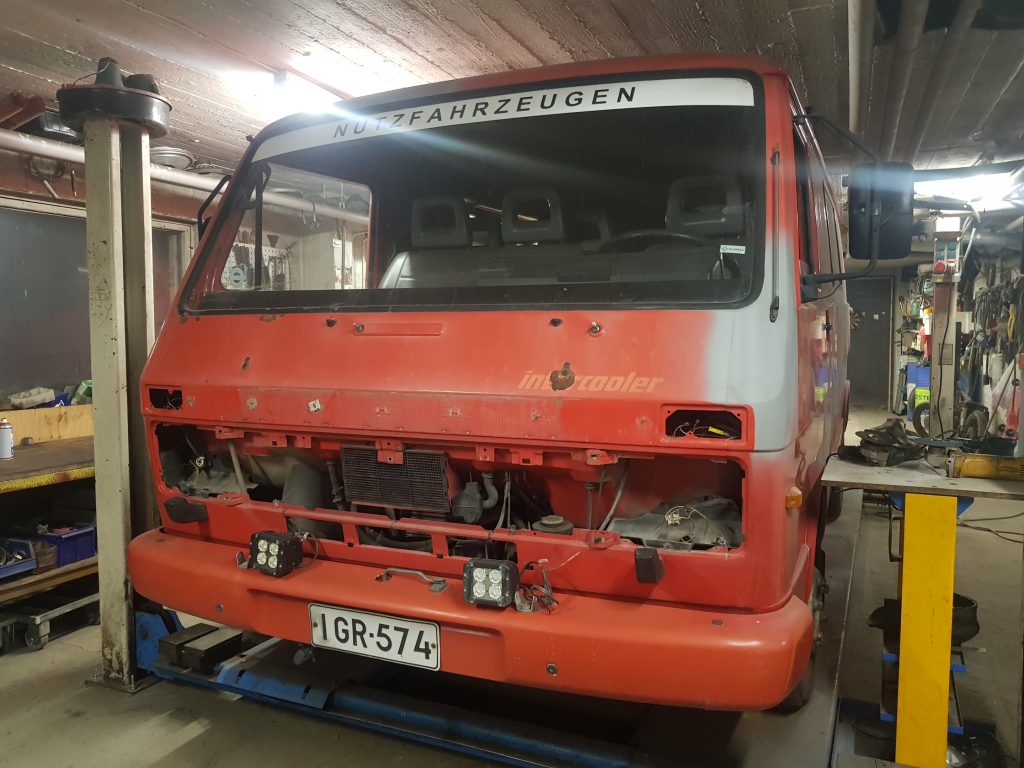 Peltihommissa isoin vika oli tuulilasin alareunassa, joka oli niin reikäinen, että sateella vesi tuli lattiamattojen alle ja ryöpsähti maahan oven avatessa. Siihen löytyi korjauspelti, joka vaihdettiin. Etupellin takanakin oleva pelti oli aika huonossa hapessa. Se korjattiin hitsaamalla korjauspaloja.